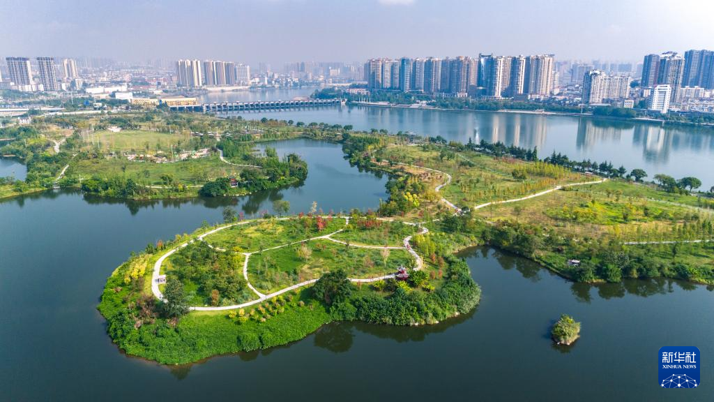 这是2024年9月27日拍摄的冷水滩区宋家洲生态公园(无人机照片)。 新华社发(雷中祥 摄)