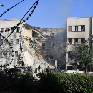 这是7月16日在叙利亚首都大马士革拍摄的在以色列空袭中受损的叙“总参谋部”大楼。新华社发(阿马尔·萨法尔贾拉尼摄)