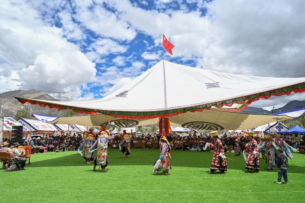 这是日前在日喀则市南木林县非遗公园举办的非遗展演活动的一景。《智美更登》《卓娃桑姆》《白玛文巴》等藏戏剧目轮番上演,吸引不少村民前来观看。