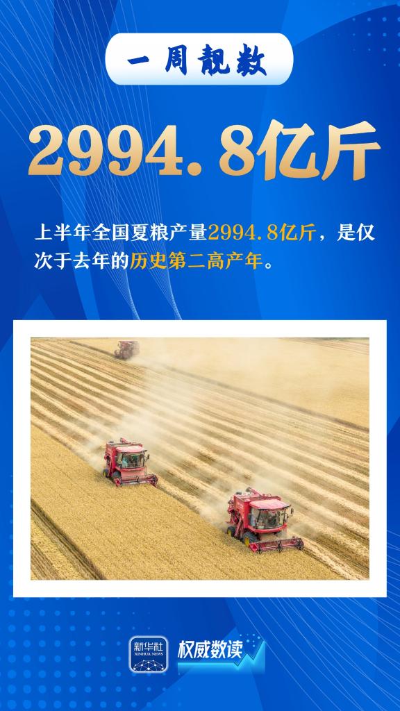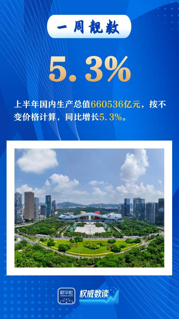 上半年国内生产总值同比增长5.3%,夏粮产量2994.8亿斤,5G移动电话用户超11亿户……本周这些数据,最值得关注。