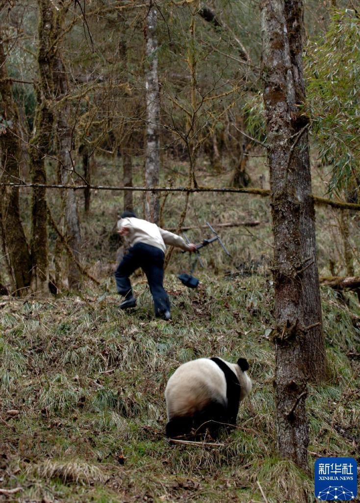 四川卧龙中国保护大熊猫研究中心的工作人员准备将野化的大熊猫放置到野化训练场(2011年2月20日摄)。
