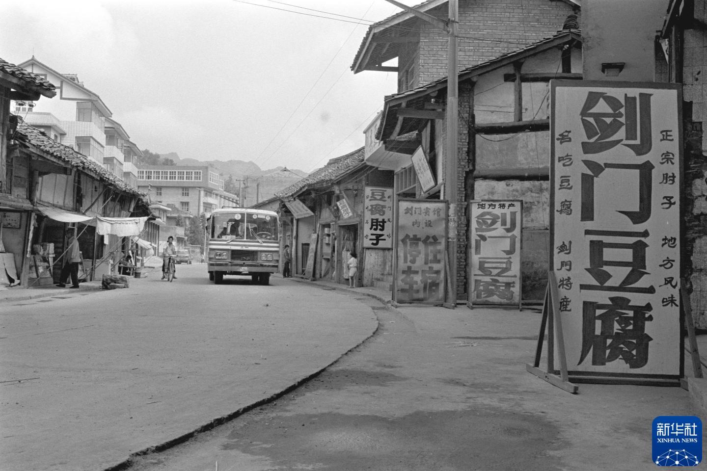 在著名的四川剑阁县剑门关旁,坐落着古老的剑门镇。这个不足1000人的小镇,竟有100多家经营以豆腐为主菜的餐馆。如今小镇生产的豆腐和剑门关齐名。图为川陕公路从剑门镇镇中央穿过,旅游车往来不断。(1994年3月16日发)