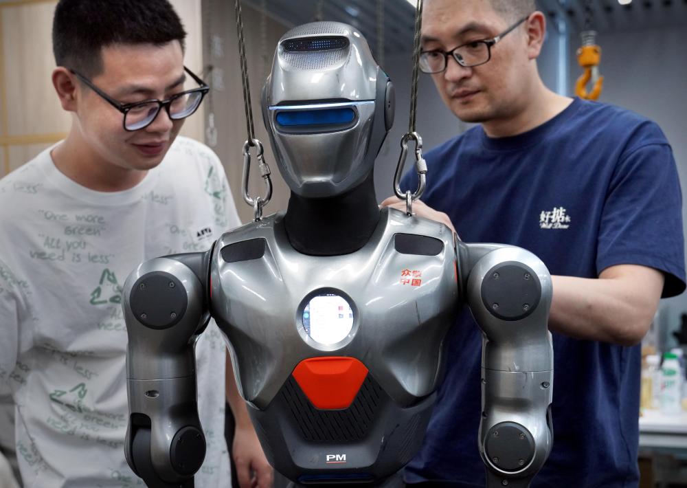6月25日,深圳市众擎机器人科技有限公司的工作人员在调试人形机器人。新华社记者 李安 摄