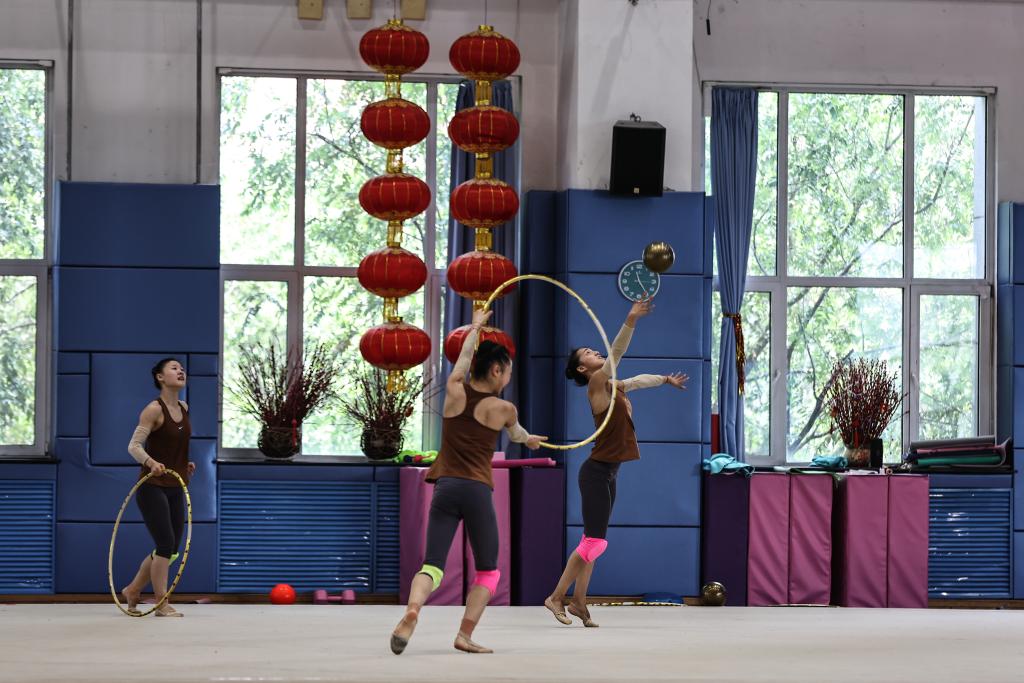 辽宁金满星艺术体操队队员在训练中。新华社记者 潘昱龙 摄