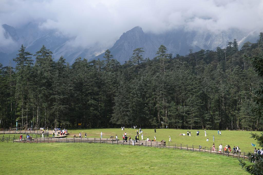7月14日,游人在云南丽江玉龙雪山景区游玩。近年来,云南依托秀美的生态环境资源,积极发展夏季避暑特色旅游。新华社发(赵庆祖摄)