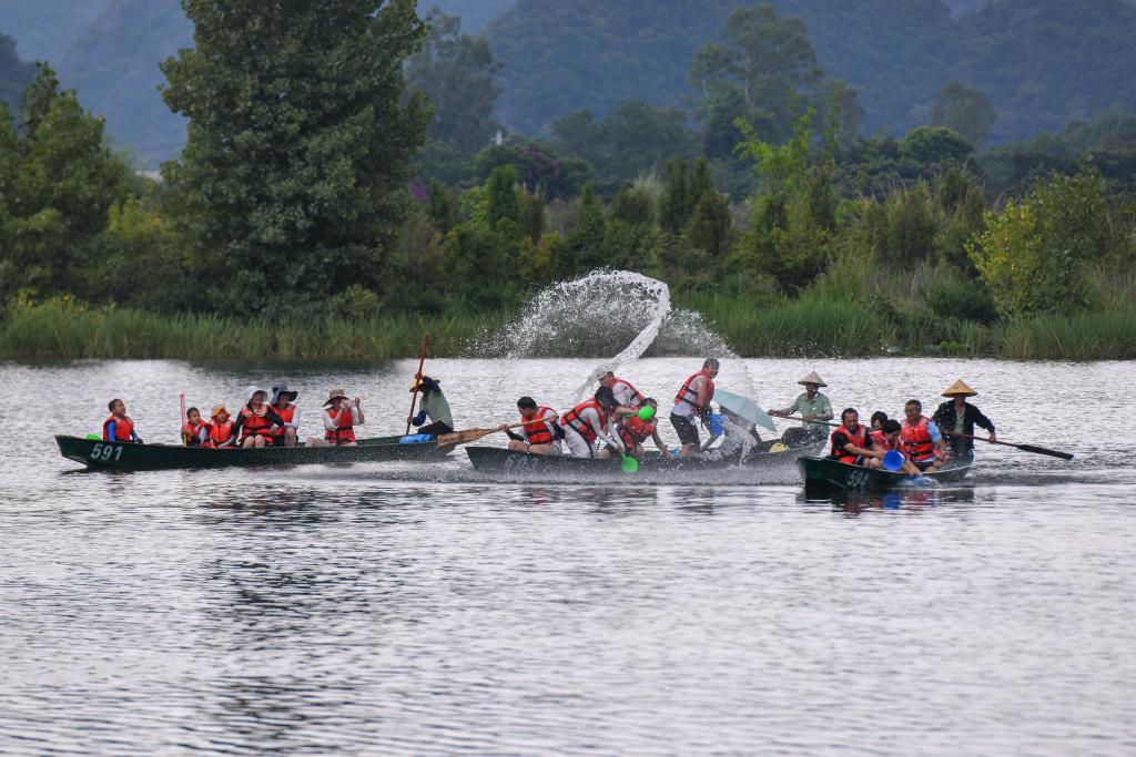 7月15日,游客在普者黑景区“打水仗”。新华社发(彭奕凯摄)
