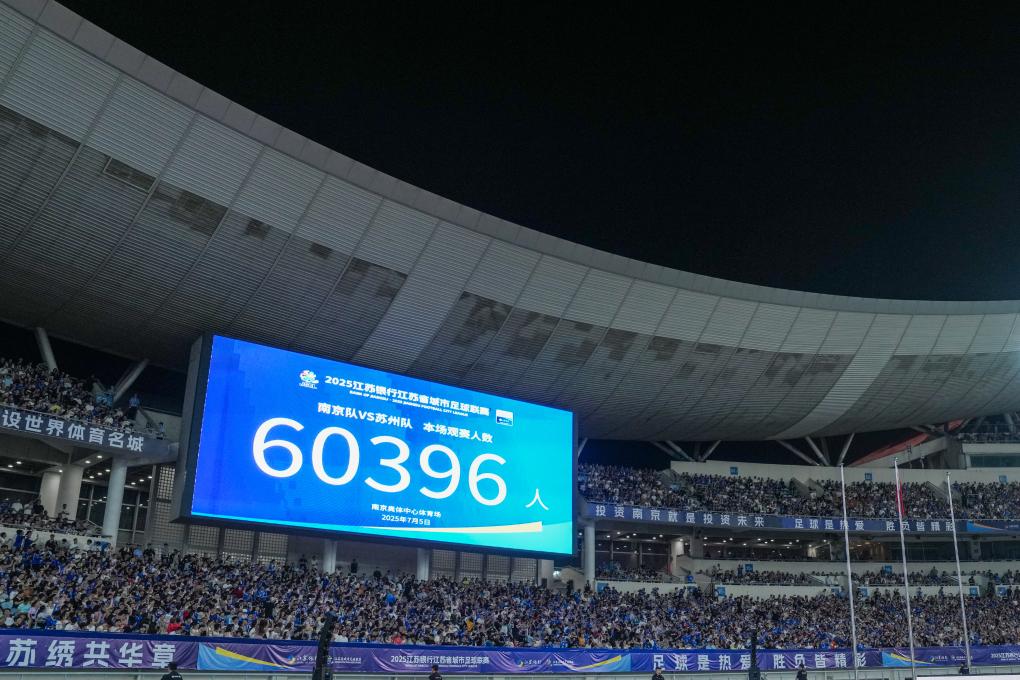 7月5日,球场大屏显示本场比赛共有60396名观众到场观赛,打破江苏省城市足球联赛单场上座纪录。