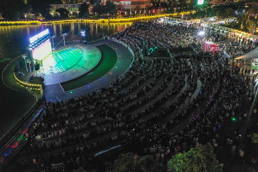 6月29日,市民、球迷在南通环西文化广场观看比赛直播(无人机照片)。