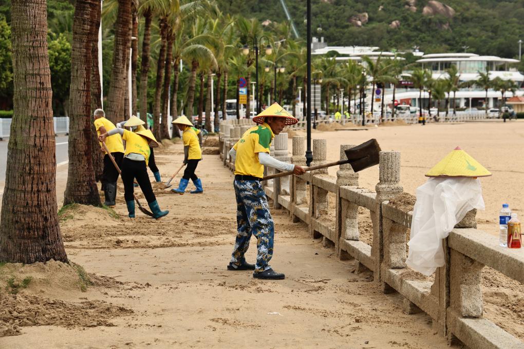 吴昌富是珠海市的一名环卫工人,他告诉记者,早上5点,他们就已经在马路上清扫杂物和树叶。“我们争取尽快把街道打扫干净,暑假期间游客多,我们要保证他们的出行安全。”吴昌富说。