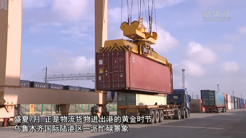 盛夏7月,正是物流货物进出港的黄金时节,乌鲁木齐国际陆港区一派忙碌景象。