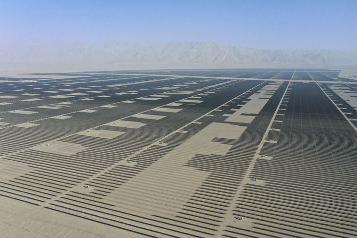 这是2025年6月26日拍摄的中国绿发新疆中绿电若羌400万千瓦光伏项目(无人机照片)。新华社记者 丁磊 摄