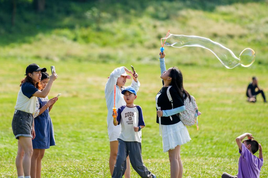 林荫下,孩子们荡秋千、玩滑梯,尽情撒欢。营地创始人申青峰说,依托仙女山的自然生态资源,针对3至12岁青少年亲子家庭,营地研发建设了大量的森林体验、自然教育场景设施,配套溜索、攀爬等运动设施,让亲近自然更具趣味性。