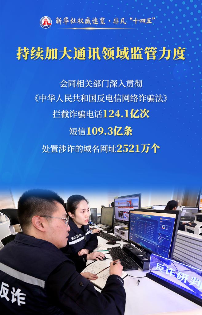 破获电信网络诈骗案件173.9万起、拦截诈骗电话124.1亿次、捣毁境外诈骗窝点2000余个……23日举行的“高质量完成‘十四五’规划”发布会上,公安部用五句话总结了“十四五”期间严打电信网络诈骗犯罪取得的成果。跟随海报,一起看看如何维护人民群众的合法权益。