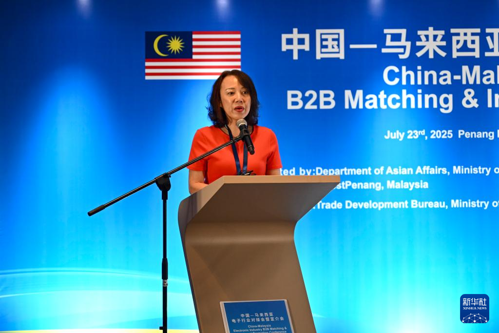7月23日,在马来西亚槟城,槟城招商局首席执行官吕丽莲在中国-马来西亚电子行业对接会暨宣介会上致辞。新华社记者 程一恒 摄