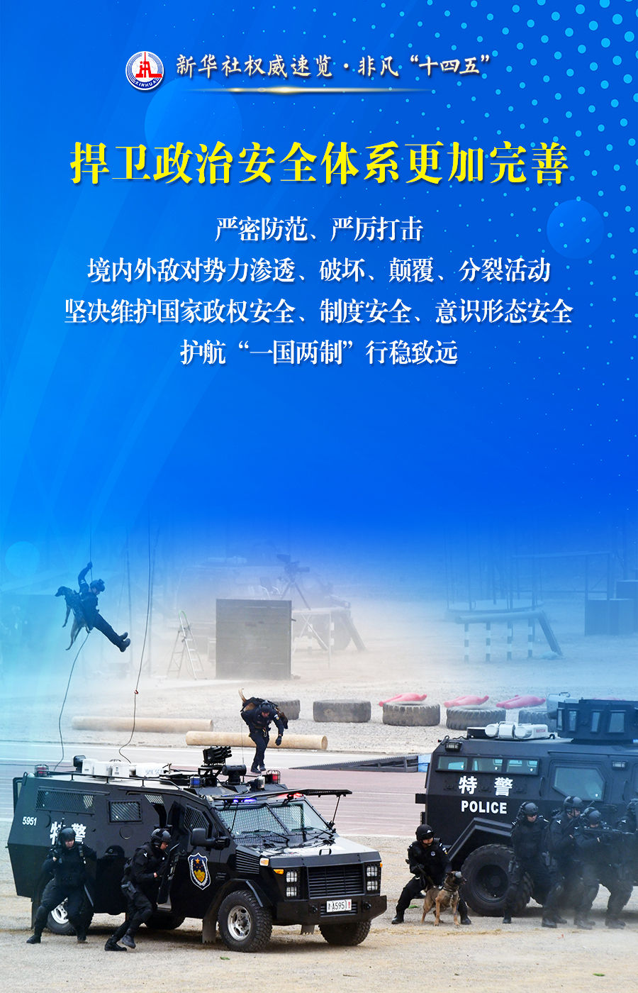 党对公安工作的绝对领导更加坚强有力、捍卫政治安全体系更加完善、社会治理效能更加凸显……23日举行的“高质量完成‘十四五’规划”新闻发布会上,公安部分管日常工作的副部长亓延军说,我国是世界上命案发案率最低、刑事犯罪率最低、枪爆案件最少的国家之一,是世界公认的最安全国家之一。跟随这组海报,一起感受!