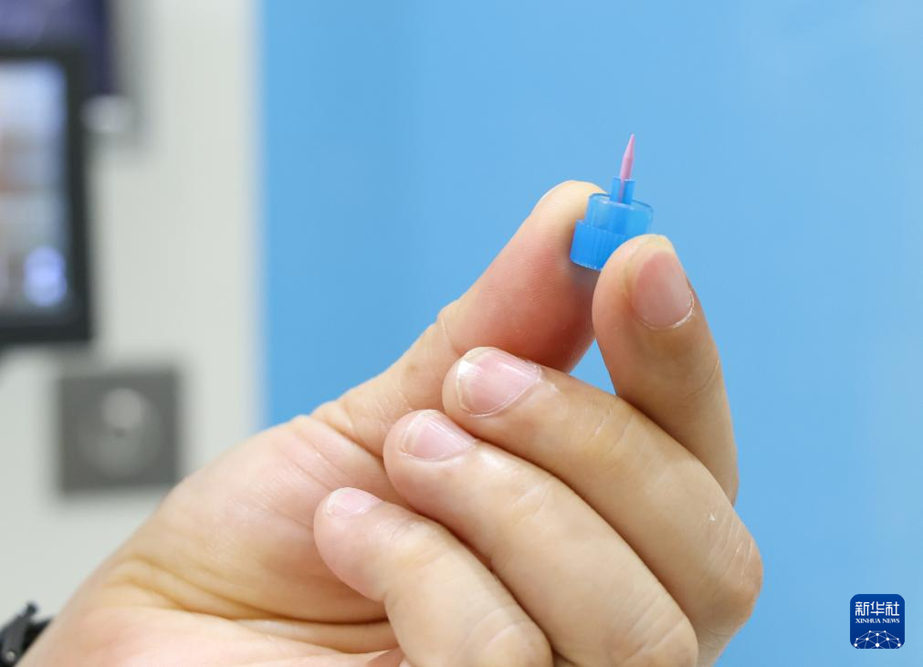 在三环集团潮州厂区,工作人员展示IC封装陶瓷劈刀(5月28日摄)。 新华社记者 毛思倩 摄