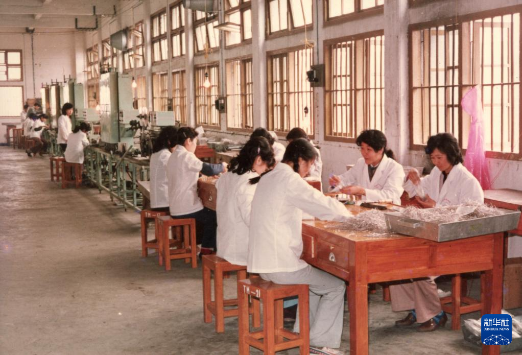 20世纪90年代,三环厂区车间内电阻编带和包装场景(资料照片)。 新华社发
