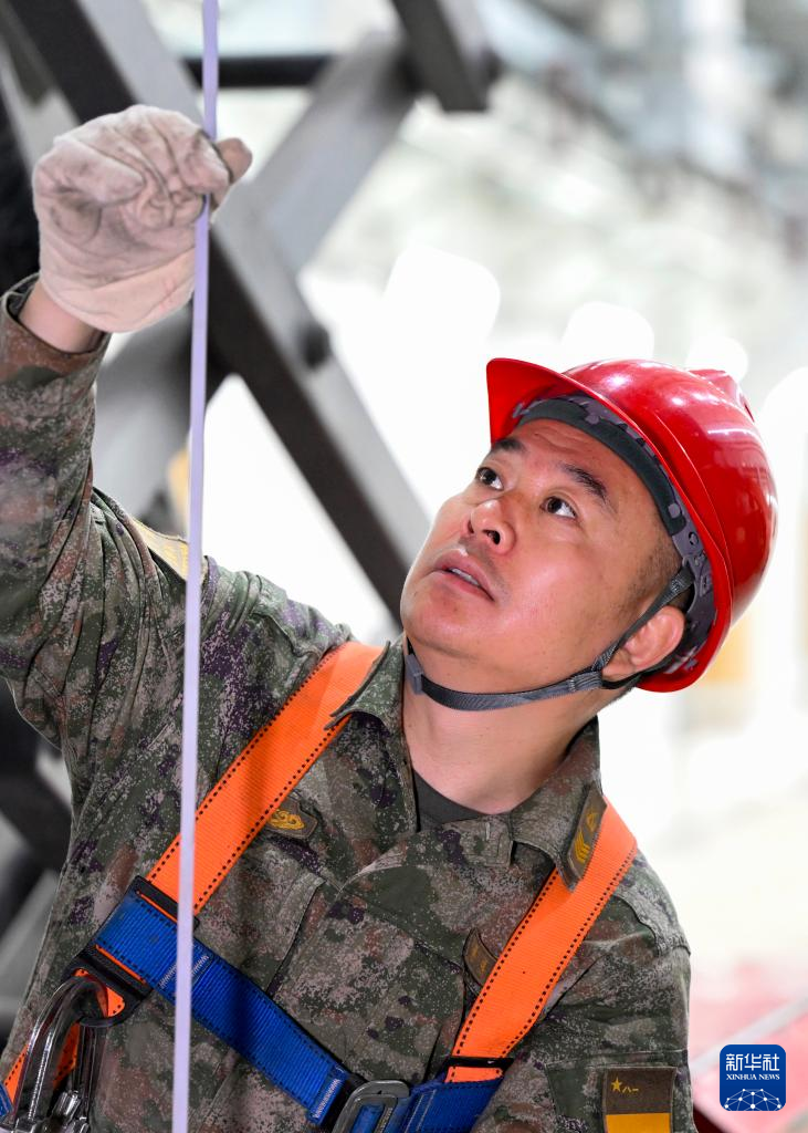 火箭军某旅工程安装技师、一级军士长崔道虎进行施工操作(资料照片)。新华社发(刘明松 摄)