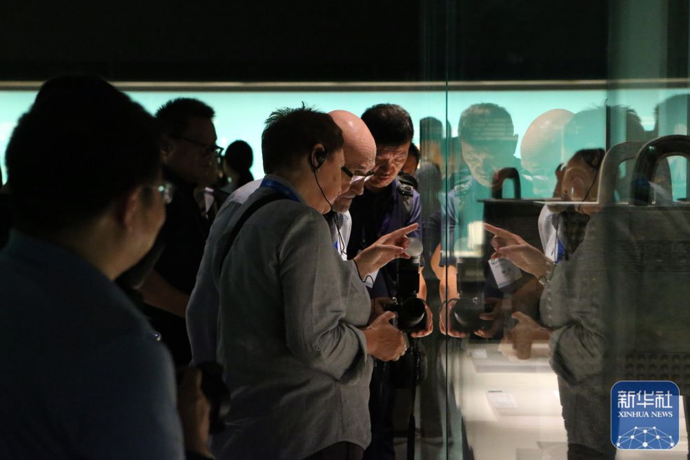 ↑ 7月23日,上海合作组织媒体智库峰会与会代表在郑州商都遗址博物院参观。新华社记者 陈为 摄