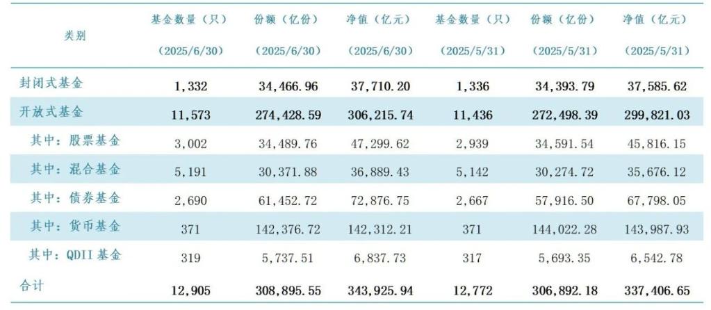 中国基金业协会最新发布的数据显示,截至2025年6月底,我国境内公募基金资产净值合计34.39万亿元。