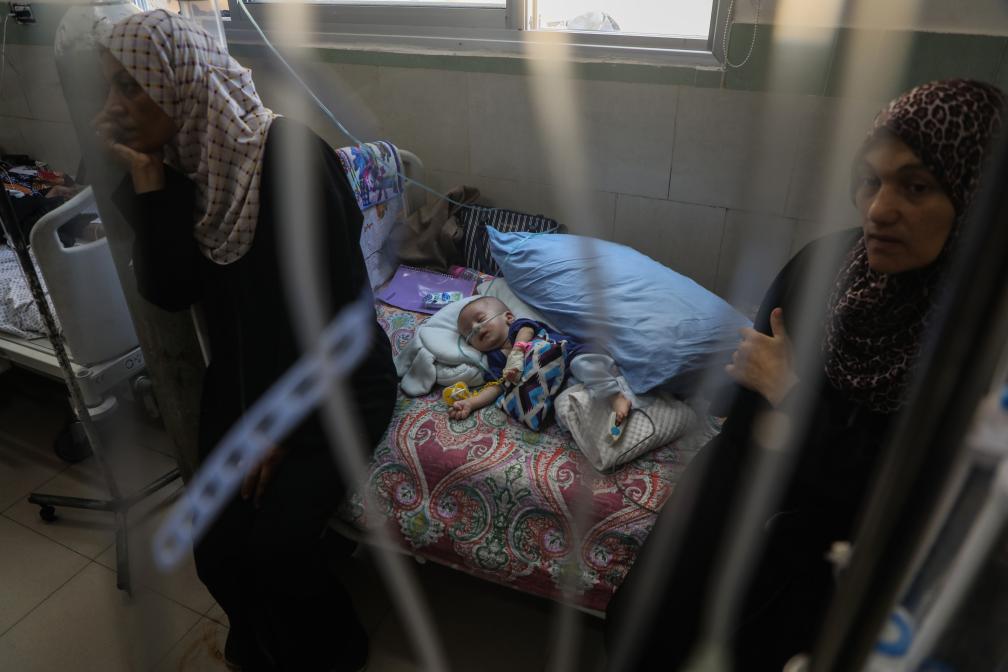 7月23日,在加沙城一所医院里,两名女子陪伴一名营养不良的儿童。新华社发(里泽克·阿卜杜勒贾瓦德摄)