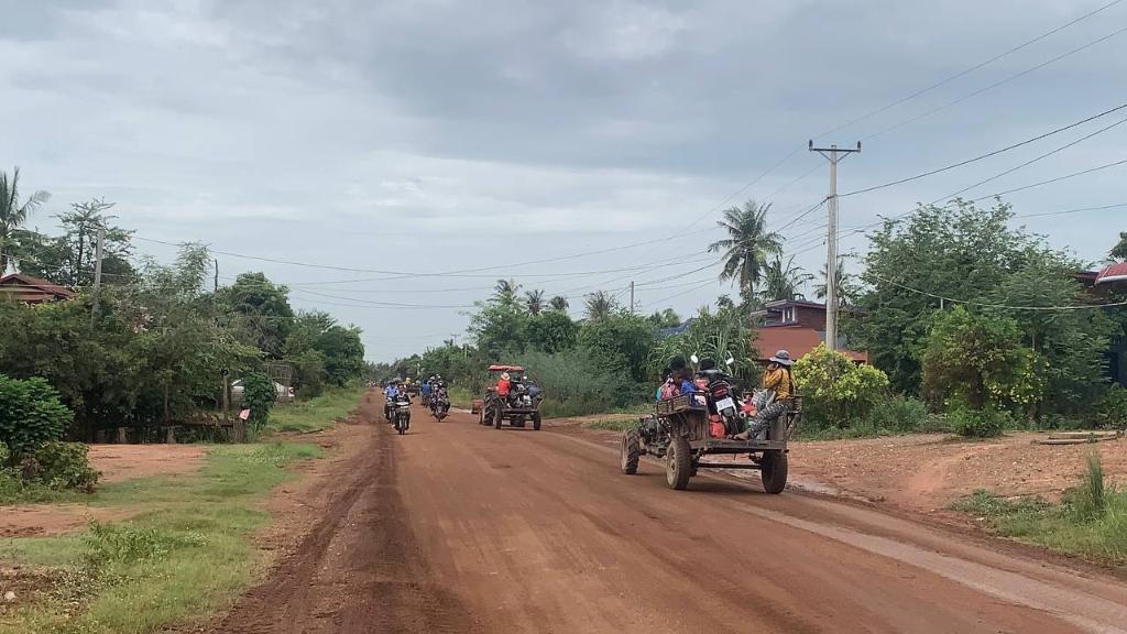 这是7月24日拍摄的柬埔寨奥多棉吉省边境地区正在撤离的民众。新华社发(帕尔林摄)