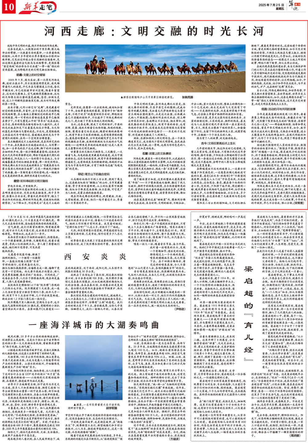 河西走廊从来不是历史的标本,而是一条流动的时光长河。涉河而过,脚下的戈壁石,是汉代戍卒的盔甲碎片,是唐代商队的骆驼鞍具,是现代光伏板的支架零件,是前人没来得及拾起的故事,也正成为每一个人的故事。千年时光的冲刷里,早已不分你我、难以分割。(宋常青)