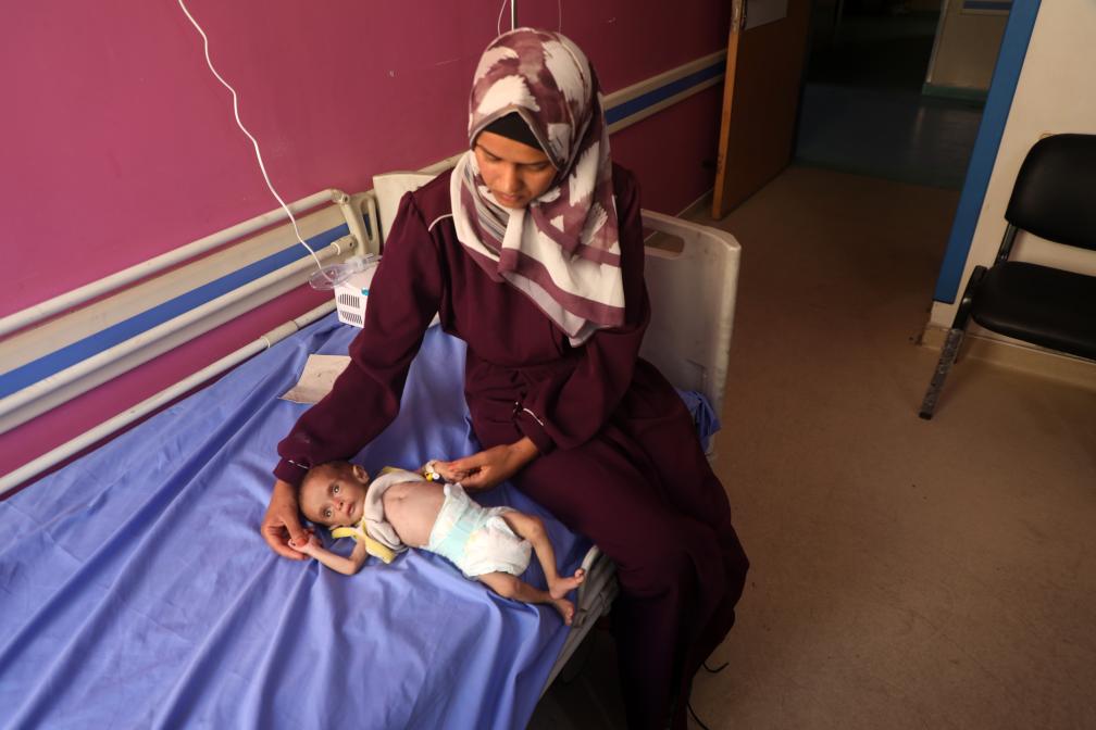 7月23日,在加沙城一所医院里,一名女子照顾营养不良的儿童。新华社发(里泽克·阿卜杜勒贾瓦德摄)