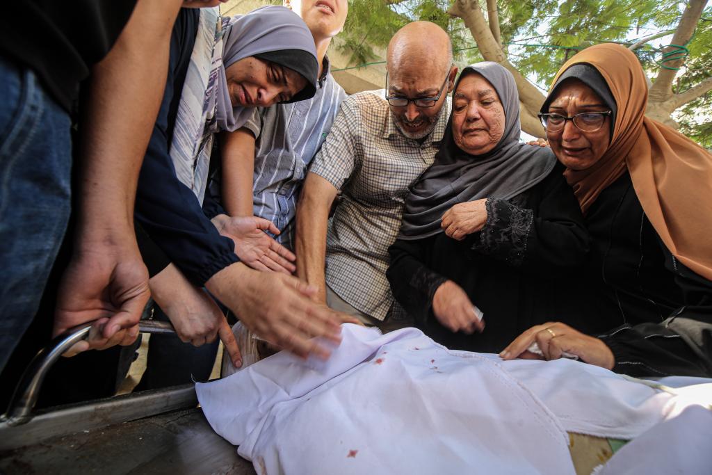 7月23日,人们在加沙城一所医院悼念遇难者。新华社发(里泽克·阿卜杜勒贾瓦德摄)