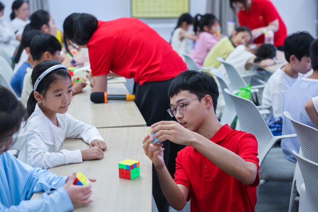 在“爱心教室”,志愿者给孩子们上魔方课。 新华社记者徐昱 摄
