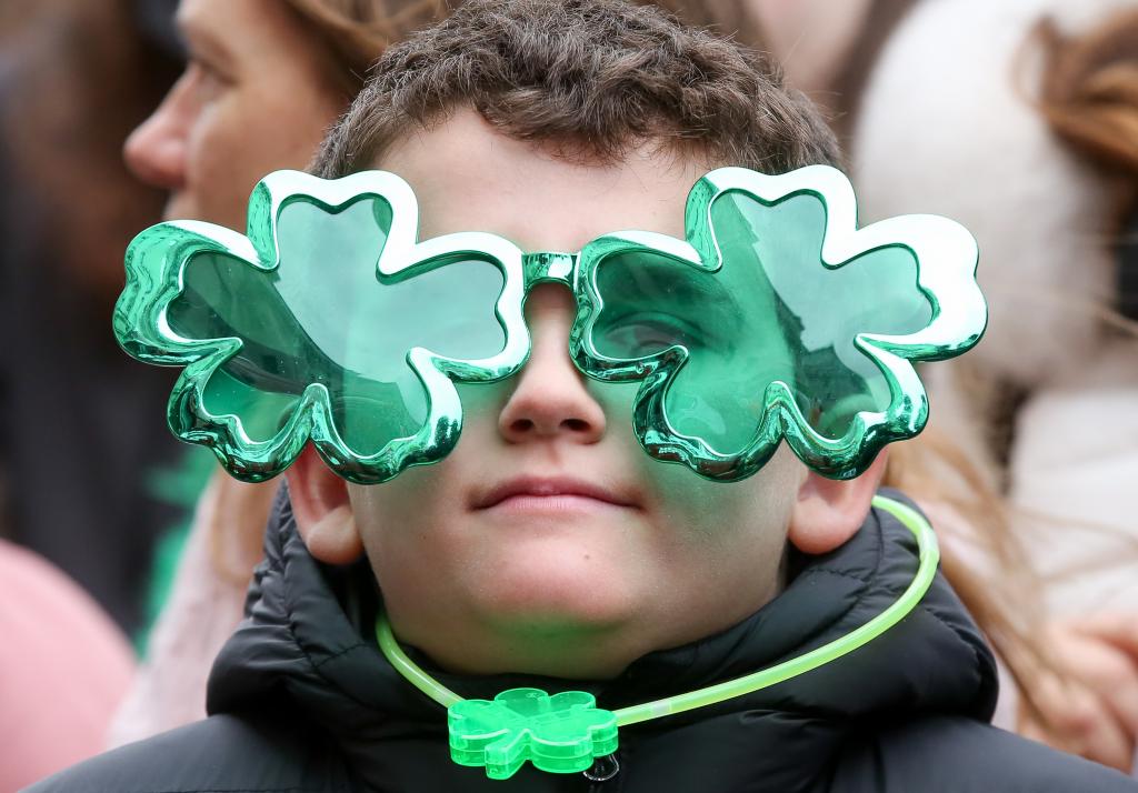 2024年3月17日,一名儿童在英国伦敦参加圣帕特里克节游行。新华社发