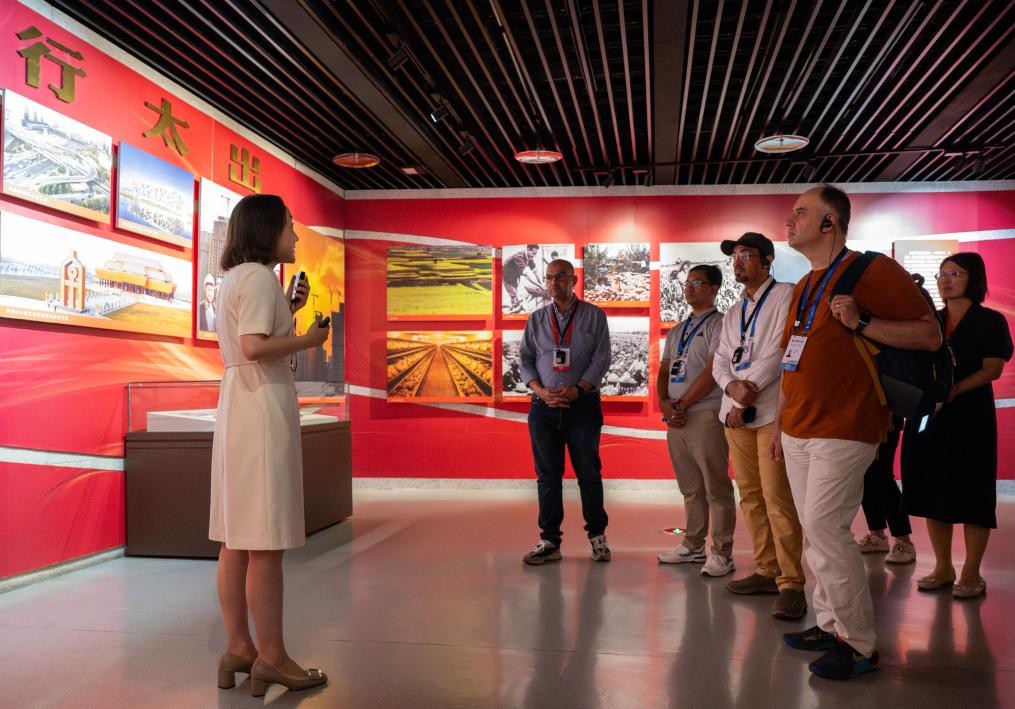 7月26日,上海合作组织媒体智库峰会与会嘉宾在河南安阳林州市红旗渠纪念馆参观。新华社记者 胡竞文 摄