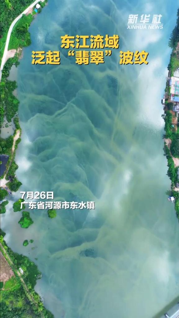 翠绿之韵,自然天成。7月26日,在广东省河源市东水镇东江流域,江面出现“翡翠”波纹,绝美场景展现大自然之美。