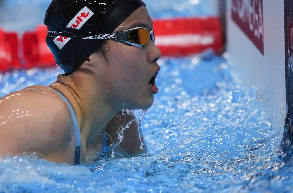 ↑7月27日,中国选手于子迪在世界游泳锦标赛游泳女子200米混合泳半决赛的比赛中。新华社记者 伍志尊 摄