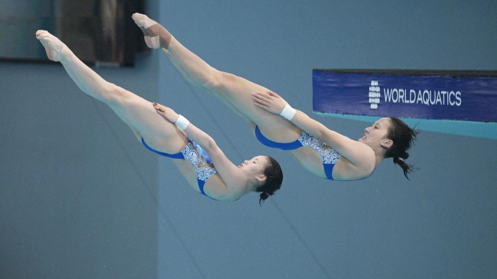 7月28日,陈芋汐(左)/掌敏洁在比赛中。新华社发(邓智炜摄)