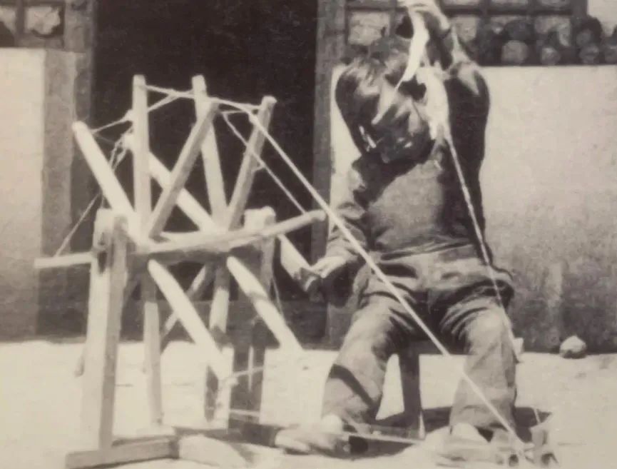吴萍在纺线。(来源:南泥湾大生产纪念馆)