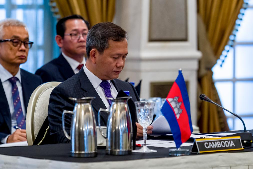 7月28日,柬埔寨首相洪玛奈在马来西亚总理官邸出席泰柬两国边境局势特别会议。新华社发(马来西亚总理府供图)