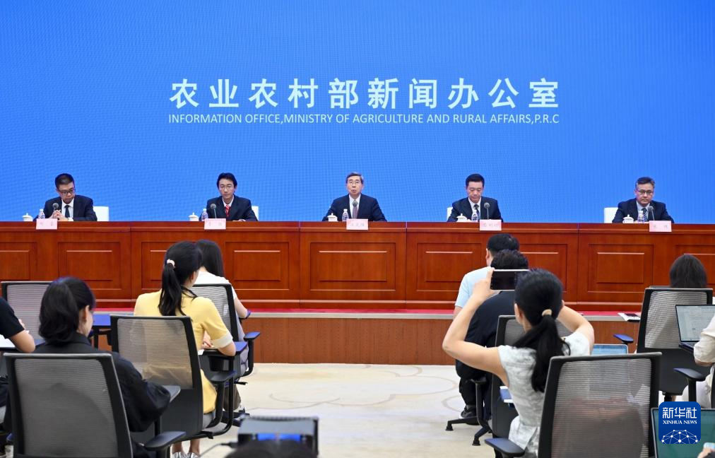 7月29日,农业农村部新闻办公室在北京举行新闻发布会,介绍促进农产品消费有关情况,并回答记者提问。新华社记者陈晔华摄