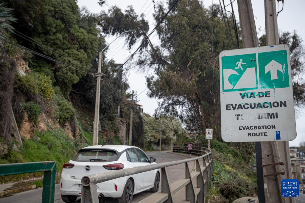 7月30日,在智利瓦尔帕莱索大区康孔市,一辆汽车沿着“海啸疏散路线”驶向安全地带。新华社发