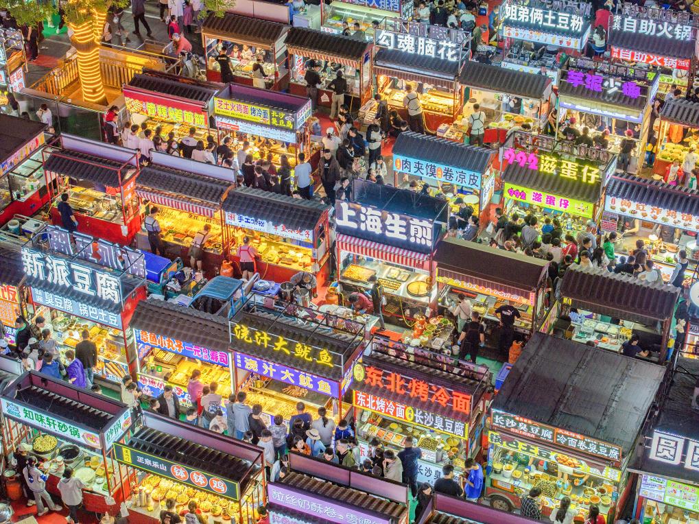 夜幕降临,河北省石家庄市正定县小商品夜市游人如织,“夜经济”持续升温。游客们在夜市品尝丰富多样的美食,感受各地饮食文化和烟火气息。