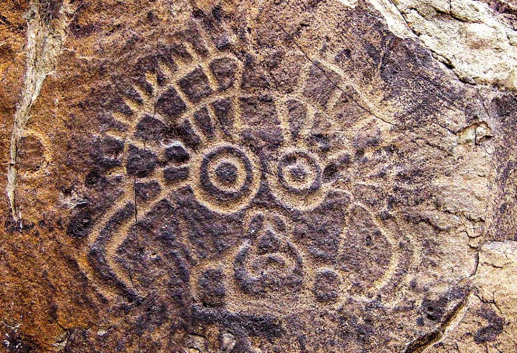 这是贺兰山岩画中标志性的“太阳神”岩画。新华社发