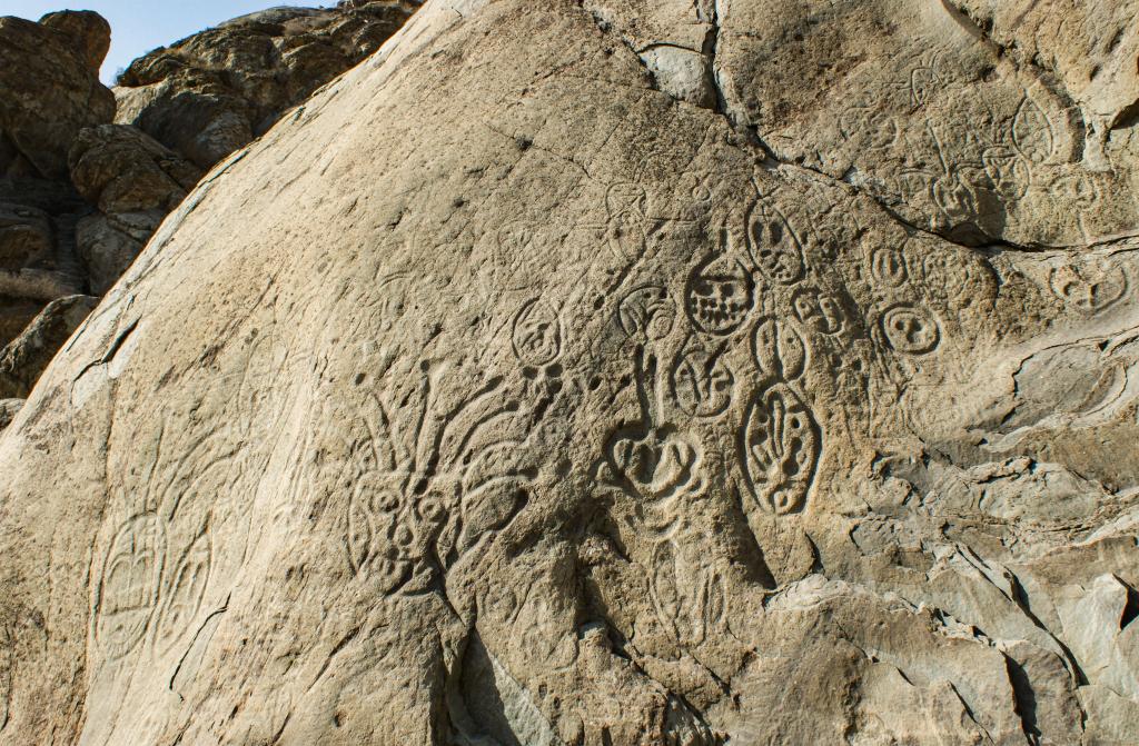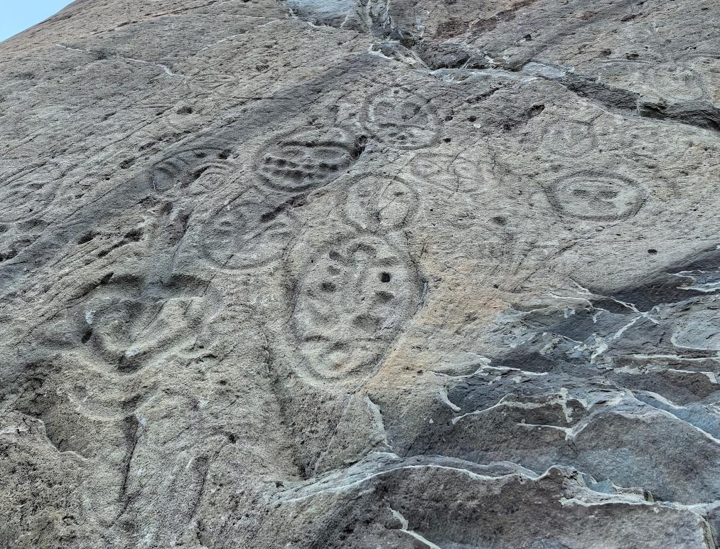 这是在贺兰山岩画景区拍摄的人面像岩画。新华社发
