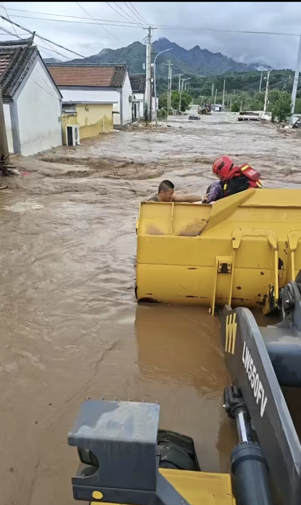 一时间,原本在工地上作业的铲车队伍,在泥流里来来往往,宛若“生命之舟”。