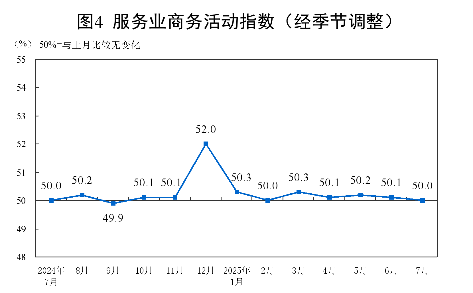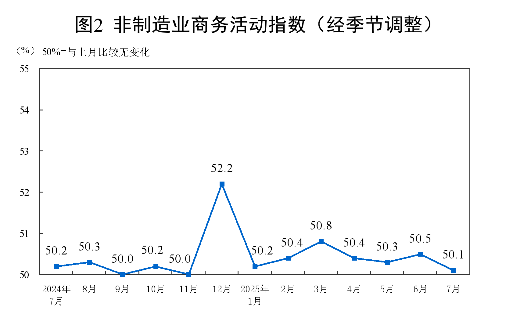 7月份,非制造业商务活动指数为50.1%,比上月下降0.4个百分点,仍高于临界点。
