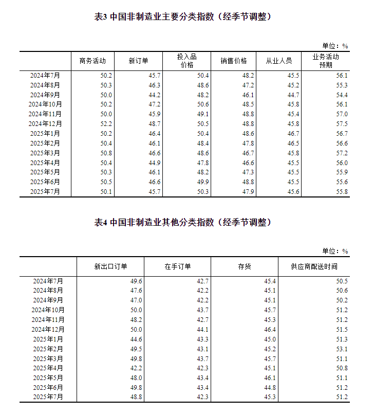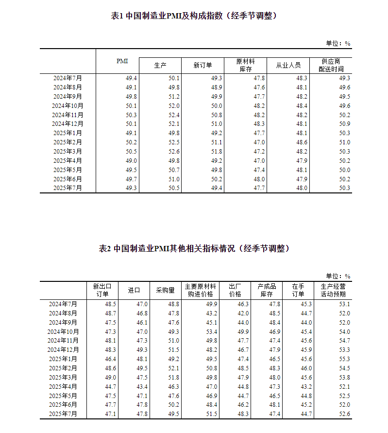 7月份,综合PMI产出指数为50.2%,比上月下降0.5个百分点,仍高于临界点,表明我国企业生产经营活动总体保持扩张。