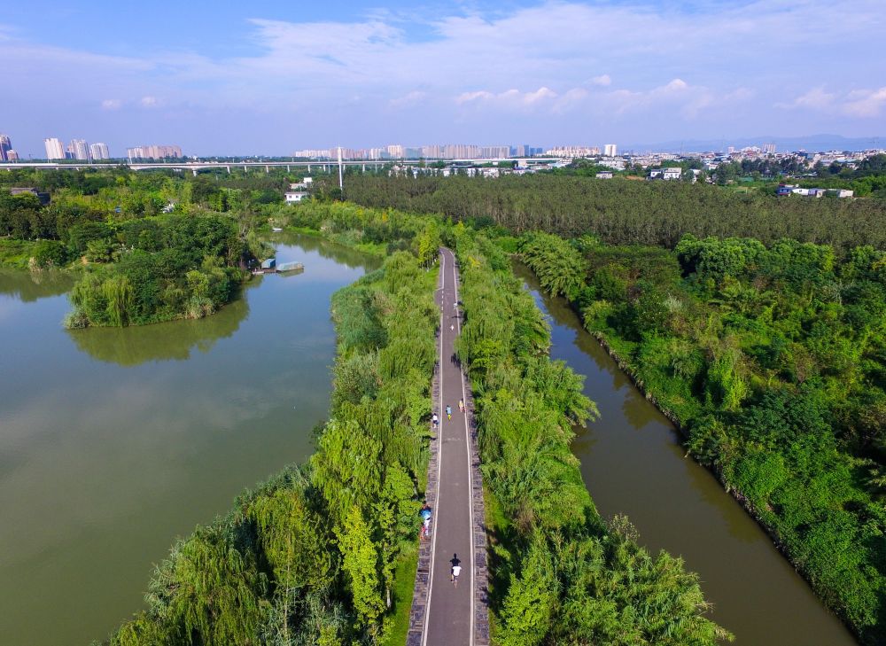↑这是成都白鹭湾湿地内的绿道(资料照片)。新华社发(张直 摄)
