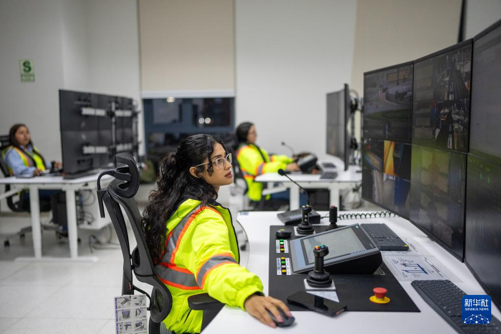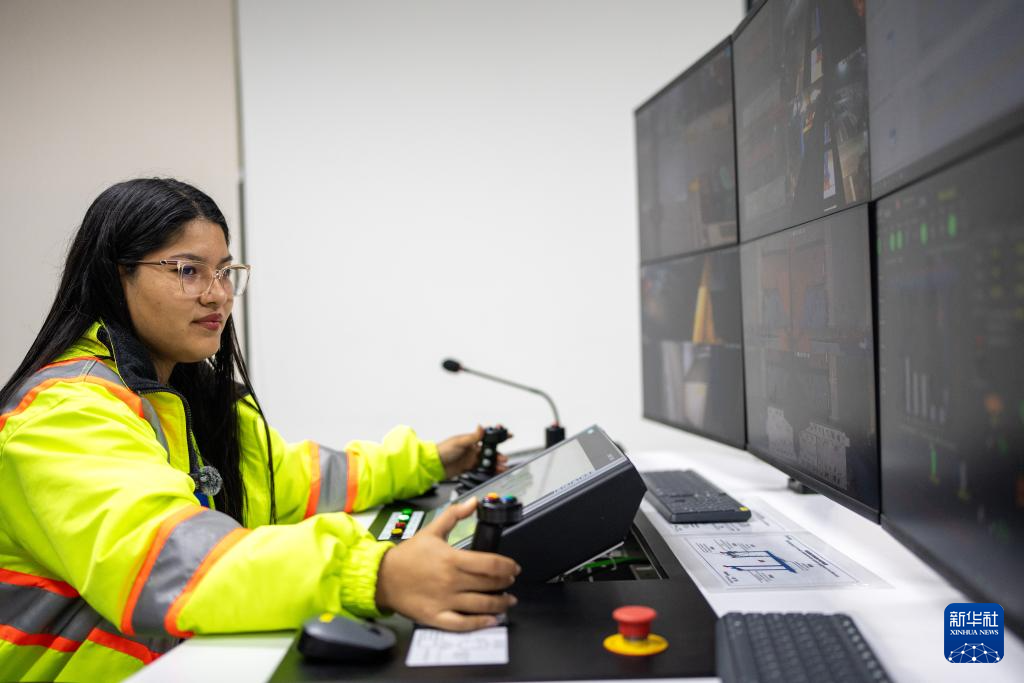 18时45分,秘鲁轨道吊操作员克劳迪娅·雷诺索准时到岗交接。钱凯港现有16位轨道吊操作员,每个班次通常只需4至5人,即可完成全部15台轨道吊的作业监控。