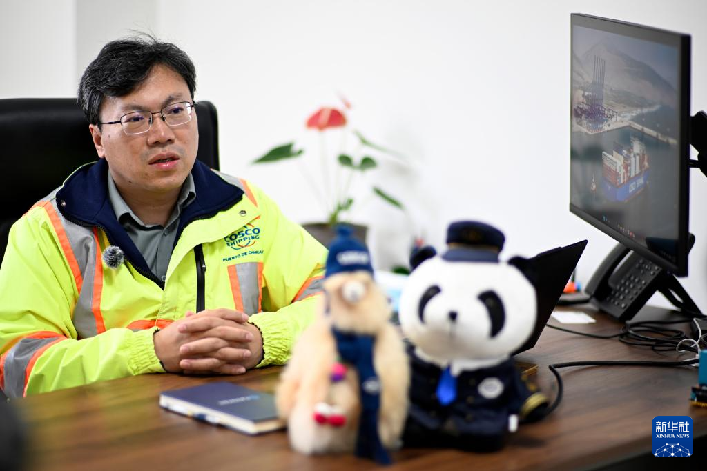 5月16日,在秘鲁钱凯港,中远海运港口秘鲁钱凯公司常务副总经理何波接受采访。新华社记者 李木子 摄