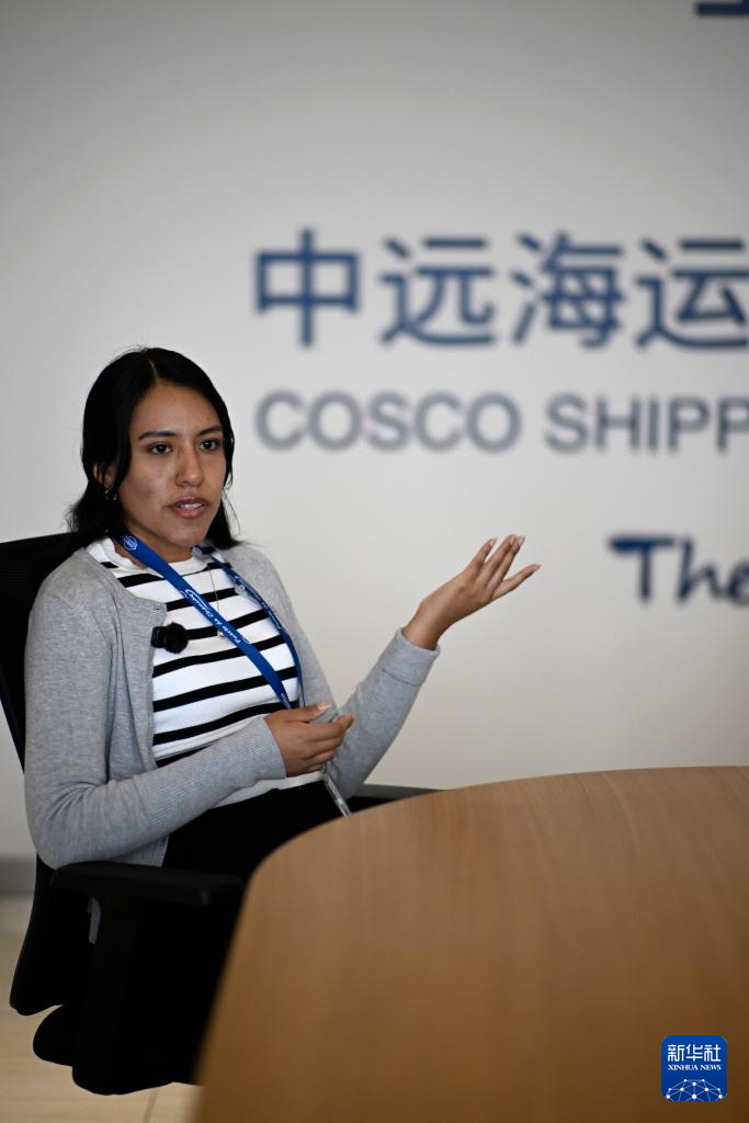 5月16日,在秘鲁钱凯港,秘鲁Indurama家电公司外贸主管迈拉·乌伊卡接受采访。新华社记者 李木子 摄