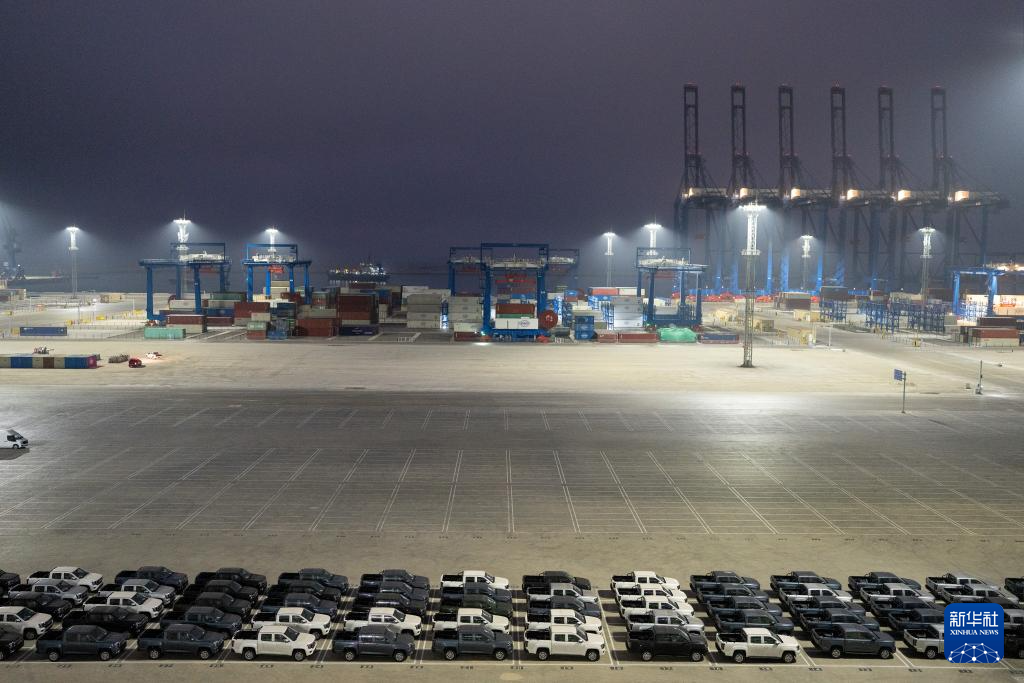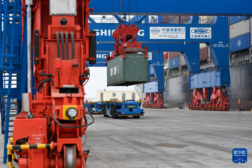 与此同时,钱凯港的“搬运工”智能驾驶集装箱卡车鱼贯而出,遵循系统指令自动列队。这些无驾驶室的集卡如贴地飞行的魔毯,电力驱动使其能耗较传统集卡降低25%以上,全程零碳排放。